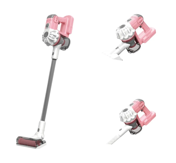 Çekme Özellikli Pilli Sesli Oyuncak Süpürge 75cm Dikey Elektrik Süpürgesi Dyson Model (3 in1 ) PEMBE