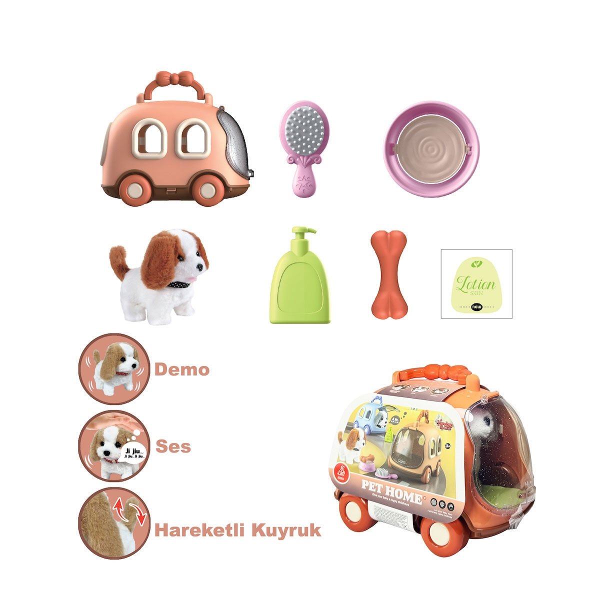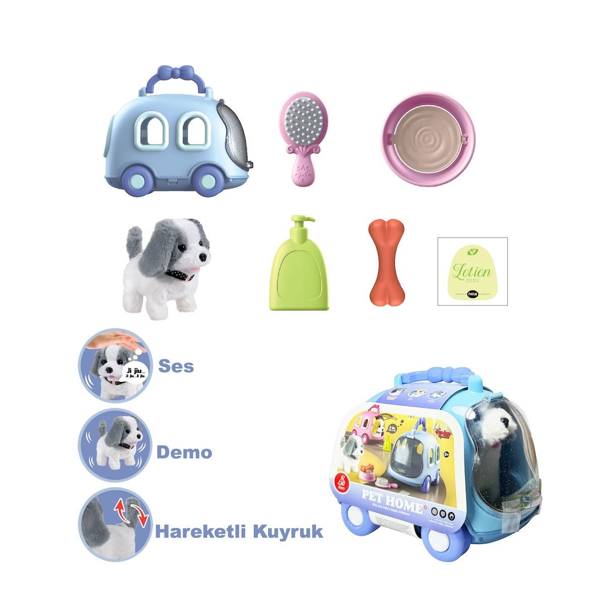 JND-6802 Taşıma Araba Çantalı Hareketli Pilli Köpek Set -Vardem Oyuncak