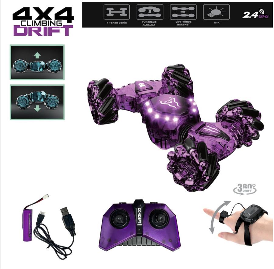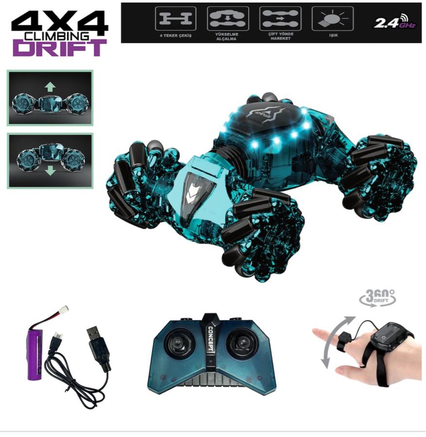 Vardem Bilekten Kontrol Uzaktan Kumandalı Full Fonksiyon Şarjlı 2.4g Şeffaf Işıklı 4x4 Drift Araba